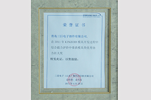 Qingdao Sankyo Electronics Components won the gold medal of SSDP Mould Excellent Cooperation Agency by Samsung Electronics (Shandong) Digital Printer Co., Ltd.