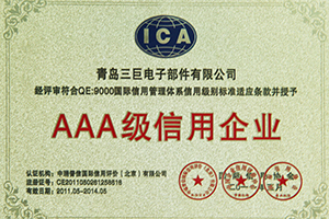 青島三巨電子部件有限公司獲得中瑞普信國際信用評價(北京)有限公司AAA級信用企業;